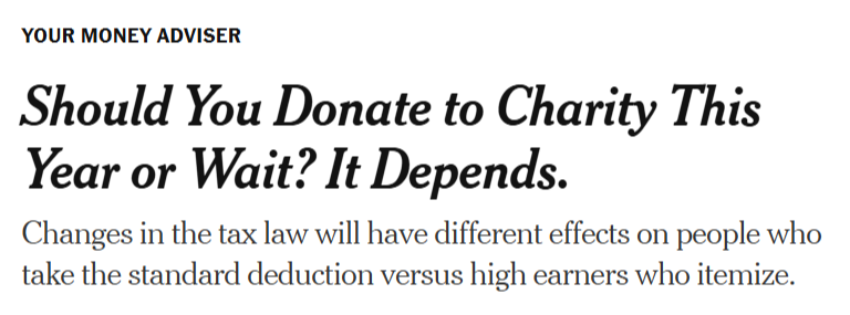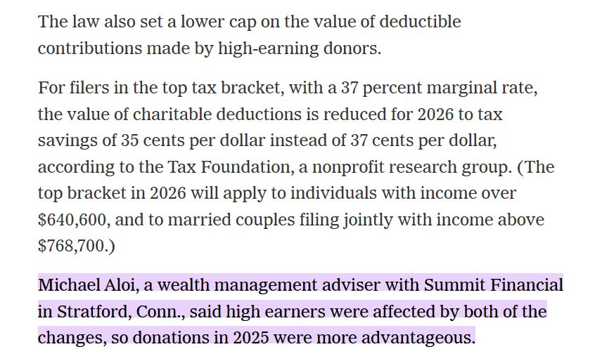 Excerpt follows, for full article, please see https://www.nytimes.com/2025/12/12/your-money/donations-charity-tax-law.html
